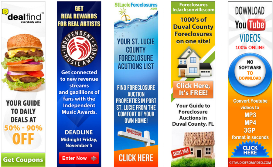 Banner size = width: 160px; height 550px. Examples of 5 Banners side by side: