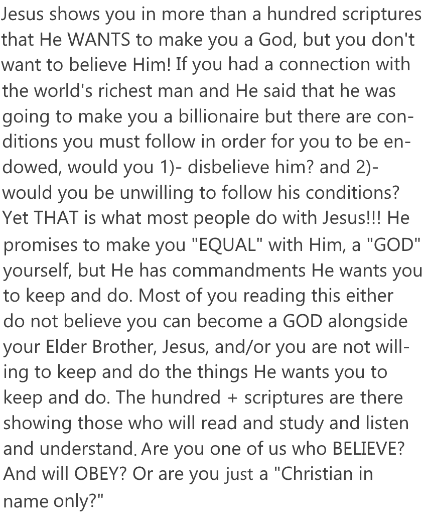 a 3rd. Whatever. But one of our main objectives is to "PROVE" to you that these Doctrines of EXALTATION AND ETERNAL LIFE are intrinsic and